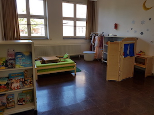 Die Kinder werden in drei Räumen und auf dem Außengelände (täglich und bei jedem Wetter) betreut.
